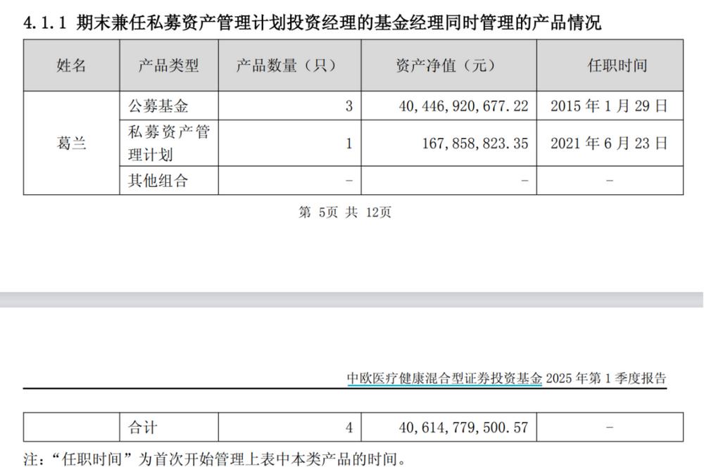 二十二日,葛兰负责三只公募基金披露季度报告。截至第一季度末,葛兰的公募基金规模已达404.47亿元,与去年年底的404.51亿元相比,整体管理规模略有下降,达到406.15亿元。