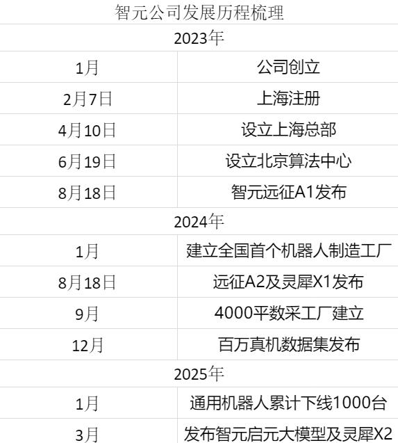 智元机器人致力于 AI 机器人 融合创新,创造世界级领先地位 一般具身机器人 产品及应用生态。公司成立于2023年2月,由多位业内资深人士共同创立,包括“稚晖君”彭志辉。拥有智元机器人 远征,灵犀,精灵 三大机器人系列,产品覆盖多种商业场景。在全球范围内,企业率先实现了人形机器人的大规模量产和商业化,向世界上许多国家和地区销售商品。智元机器人第1000台通用具身机器人于2025年1月正式量产下线,创下行业新纪录。