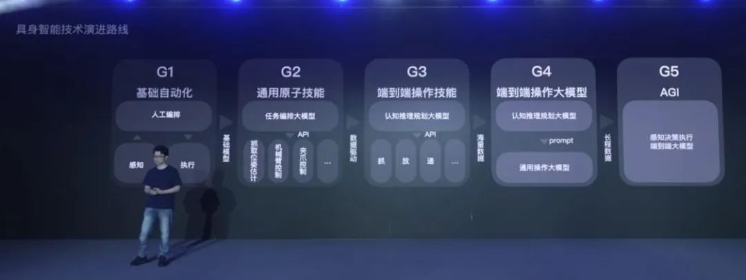 G1(基本自动化)→G2(通用原子技能)→G3(端到端操作)→G4(操作大模型)→G5(AGI),目前正处于G2向G3越迁阶段。