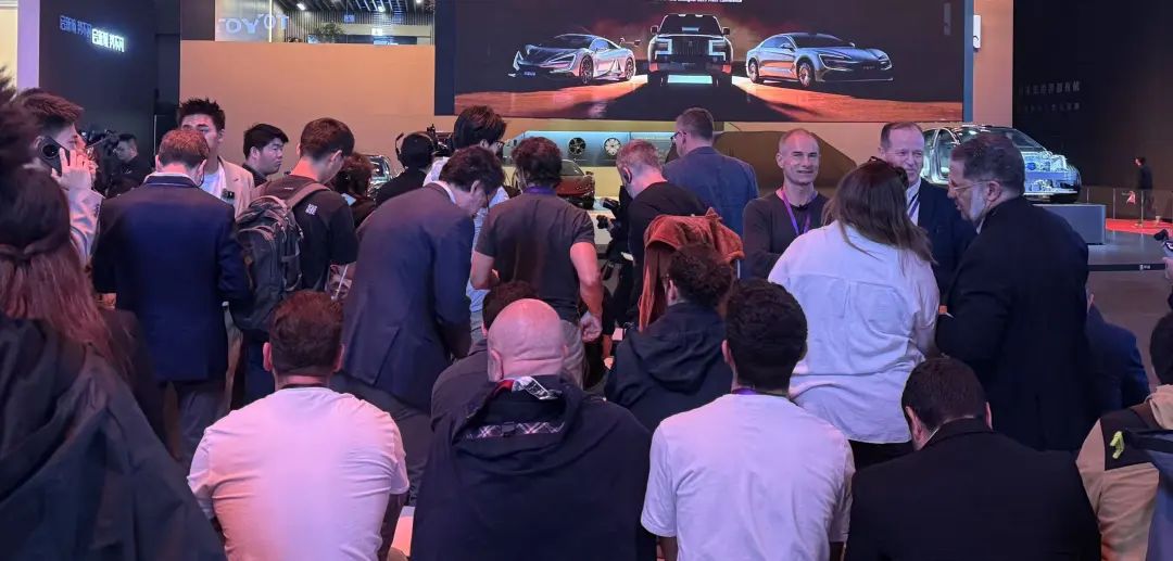 车展非常热闹。新闻发布会还没有开始。热门展位的人有三层和三层,包括媒体、投资者和同行。摄影/李寅