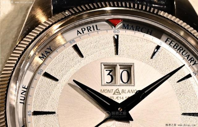 这本书的大日历窗口位于盘面上 12 点击方向,通过表壳侧面 2 点位按钮,可以快速调节。可以自动识别除年历手表之外。 2 月外历法情况,自动区分 30 与 31 号。红色箭头在盘面边缘指示月份,灵感来源于“恶魔之尾”箭头,也是美耐华手表常见的元素。一个值得注意的细节是,七月份对应的单词并不是“” JULY ",而是品牌名称" MINERVA ",旨在纪念 1887 年 7 月" MINERVA "正式注册为商标。