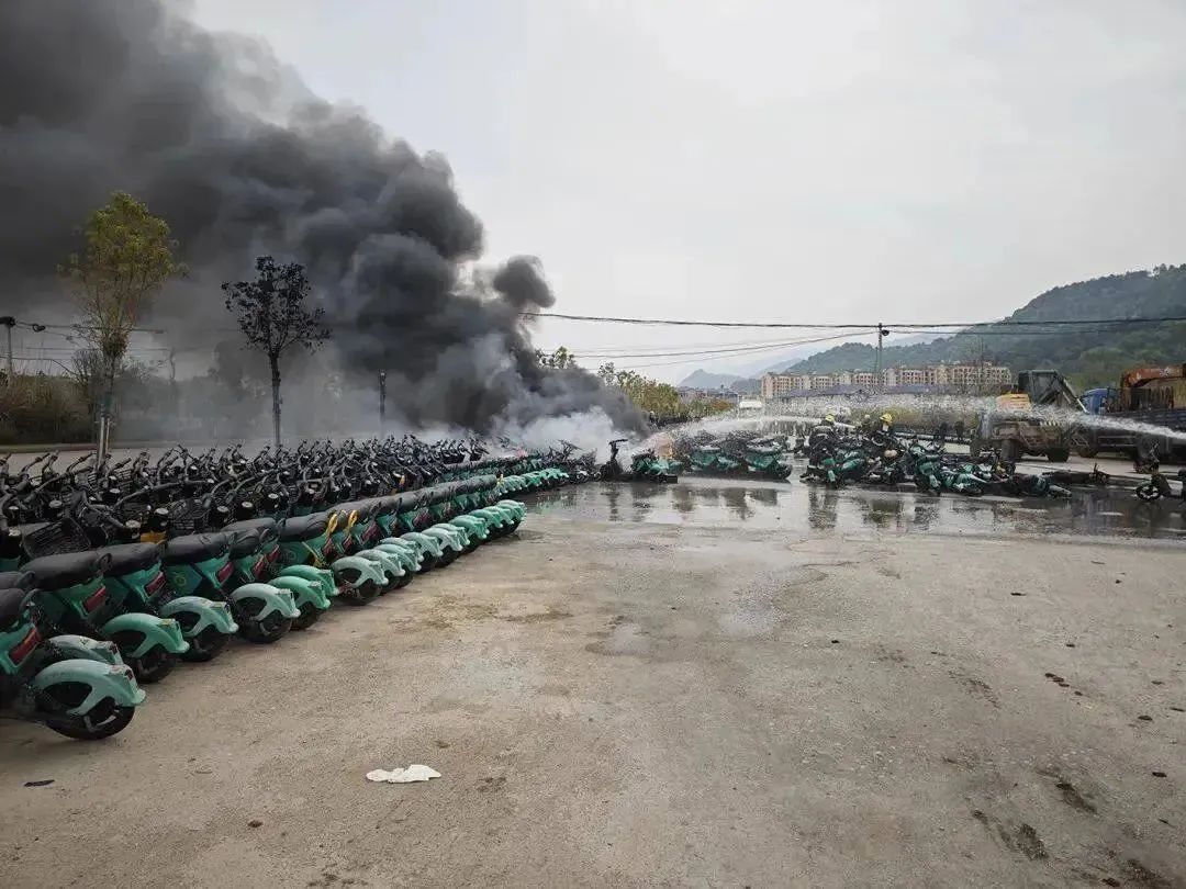 2024年12月,福州市晋安区泰和广场(五四北店)周边,一辆电动自行车露天停车棚发生火灾。火灾导致57辆电动自行车被烧毁。幸运的是,没有人员伤亡。