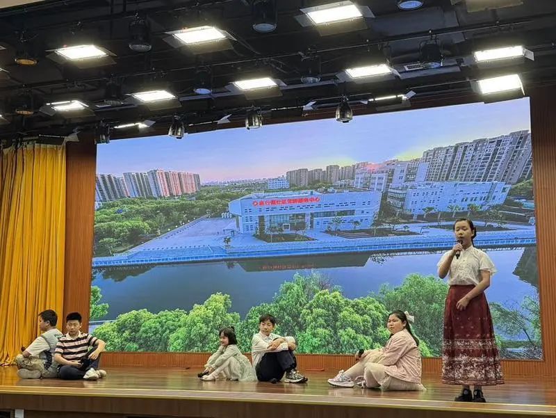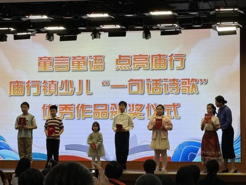 活动首先为庙行镇“一句话点亮庙行”优秀诗歌学生颁奖,并由获奖学生现场表演,展示诗歌。