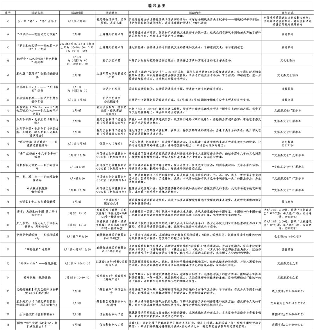 随着“五一”假期的临近,嘉定协调各街镇资源,围绕艺术展览、音乐曲艺、商业区推广、乡村、节日便利等主题,结合各街镇特色文化,打造“艺韵佳境”、“节奏佳风”、“嗨购嘉市”、“乐活嘉园”、“睦邻嘉里”五大板块88项活动,为市民和游客的节日生活提供“文化旅游盛宴”。请接受这个策略↓