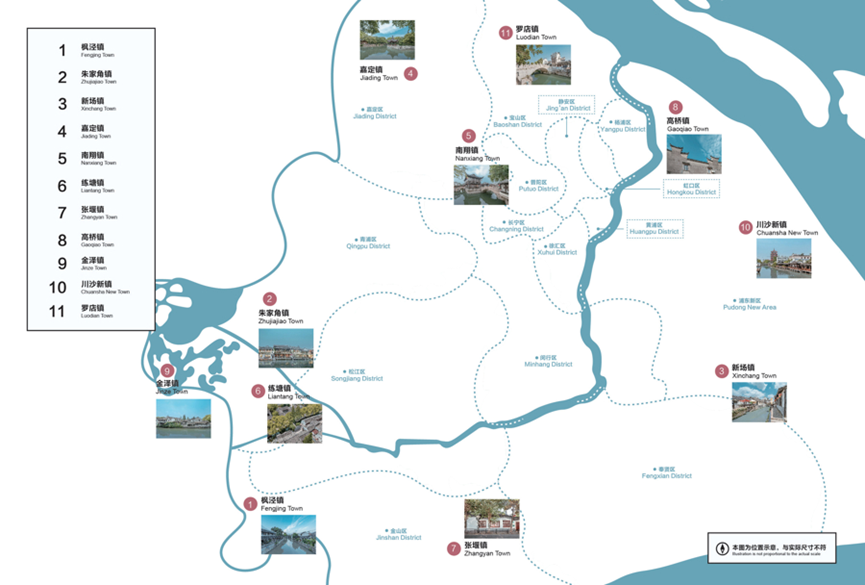 上海历史文化名镇(高价值历史文化资源聚集的古城)分布示意图。来源:江南:上海古城,从文物的角度来看。