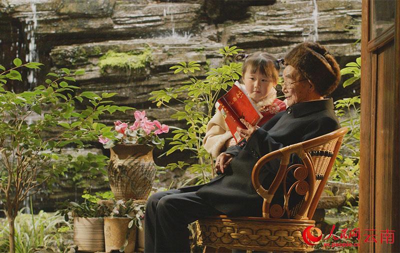 在云端乡愁书院里,正在读书的爷孙两人。人民网记者 庄志斌摄