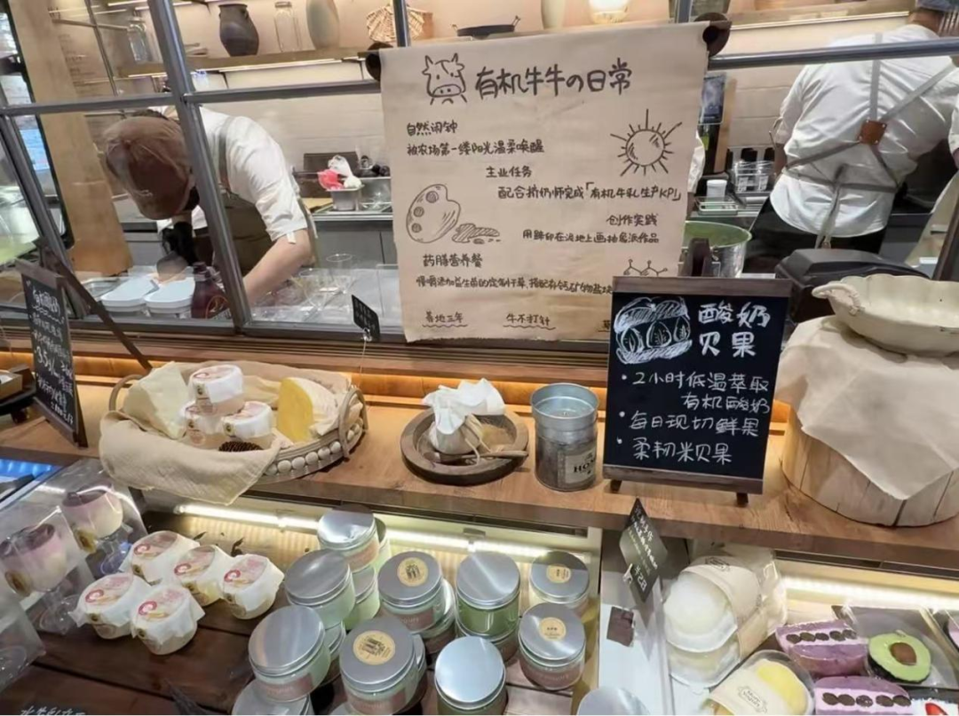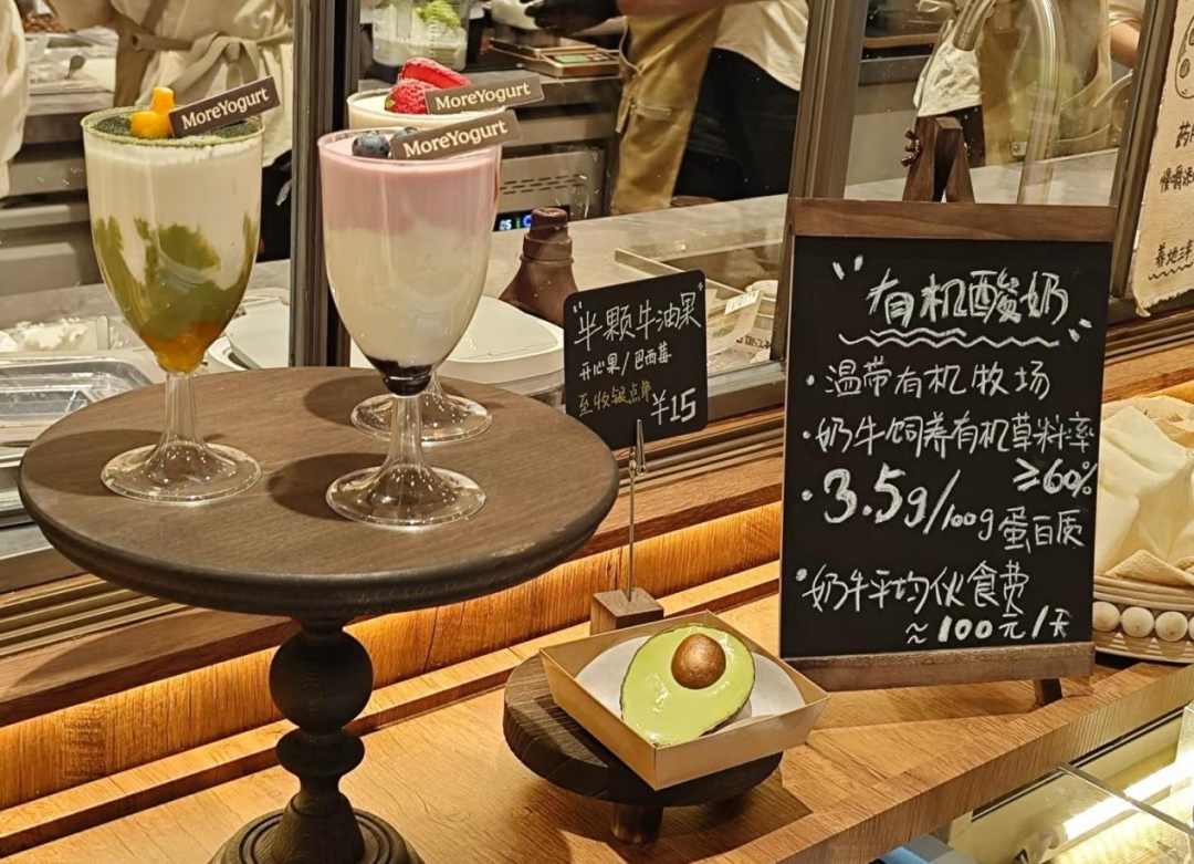 在这种背景下,“牧场奶仓”不是一个简单的店铺升级,更像是一个战略品牌重新定位的尝试。与传统门店相比,牧场奶仓不仅在空间设计上更加沉浸,而且在产品形式上“饮用” 食品的延伸探索——烘焙系列、布丁甜品、轻食酸奶等产品的推出,代表着茉酸奶正试图撬动更大的酸奶零售份额。