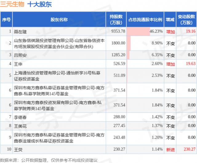 依据三元生物 2024 第三季度报告公布的十大股东详细信息如下: