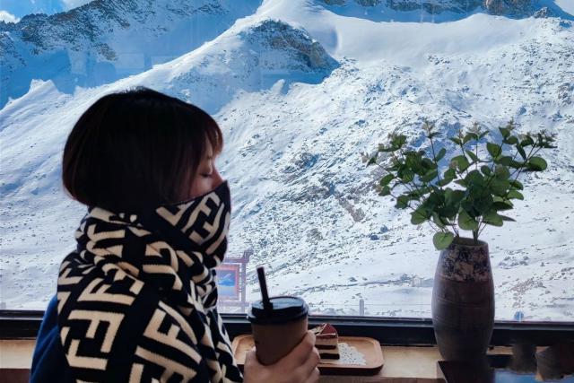 最难忘的时光很多!比如在达古冰川的咖啡馆里,带领团队的阿迪给了我们一个优秀的座位。每个人都喝着温暖的咖啡,看着窗外神圣的冰川,打卡拍照,非常舒服。 ~