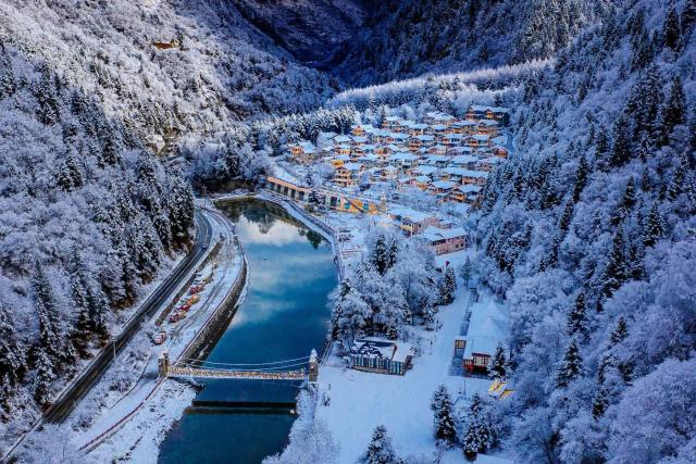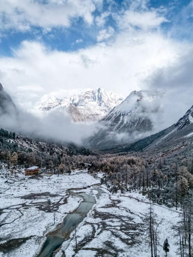 这次旅行全程都是大写的幸运,幸运的是在晴天上达古冰川,喝得真的很好。 . 雪顶咖啡;最幸运的是,我在毕棚沟看到了美丽的雾凇,打了一场雪仗;最后,我住在我痴迷的花田木屋里,舒舒服服地泡了私汤。一切都是那么美好!