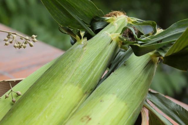 2、去掉一部分玉米壳,如果玉米须太长,剪掉一部分,但不要全部撕掉。