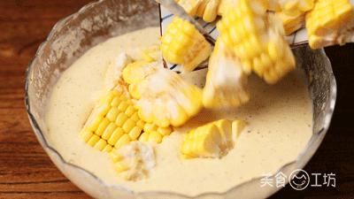 2、甜玉米本来就很容易煮熟,挂糊煎炸不需要太长时间。