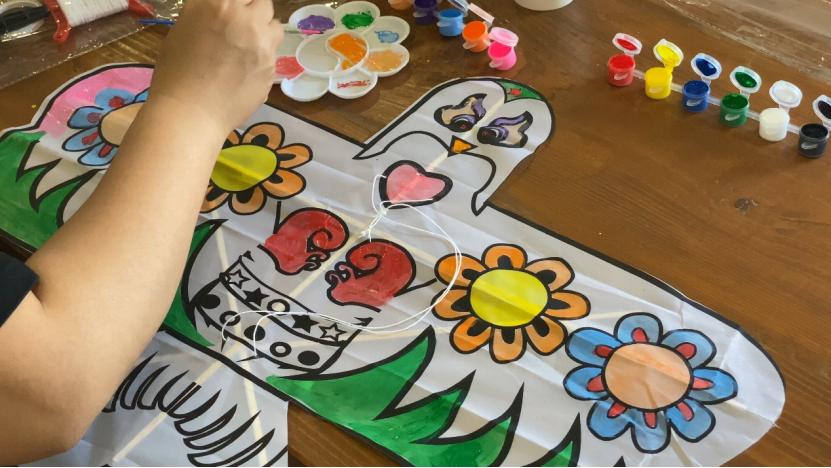 每个人都来到基地的哇菜园,一只手拿着篮子,一只手拿着收获工具,穿梭在田野和垄断之间,感受采摘蔬菜的快乐。孩子们也感受到了做风筝的乐趣,“趁东风放风筝”,一起画出心中的春天。