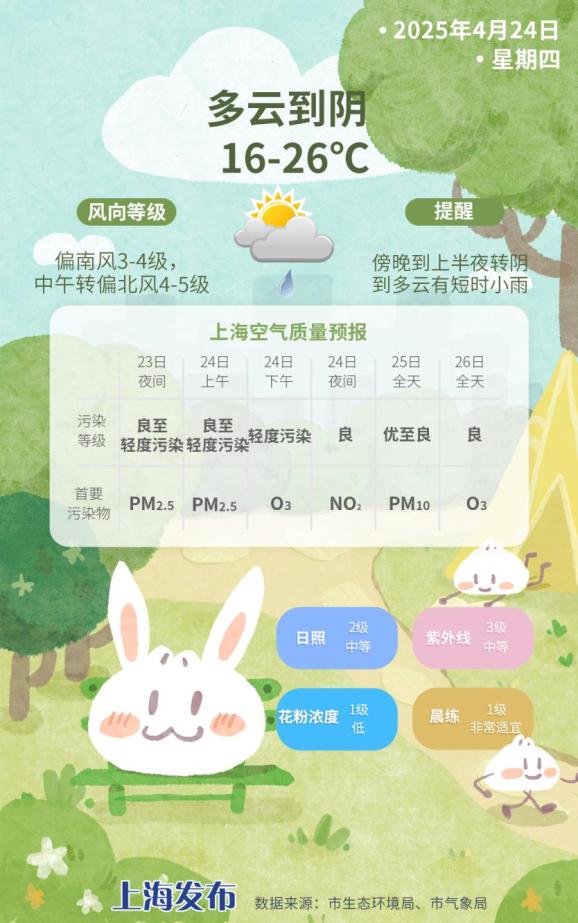 白天云系增多,多云到阴,晚上到多云有短时间小雨,雨势较弱,对出行影响不大。全天16-26℃,体验舒适宜人。西北风3-4级,中午北风4-5级,相对湿度95%-40%。