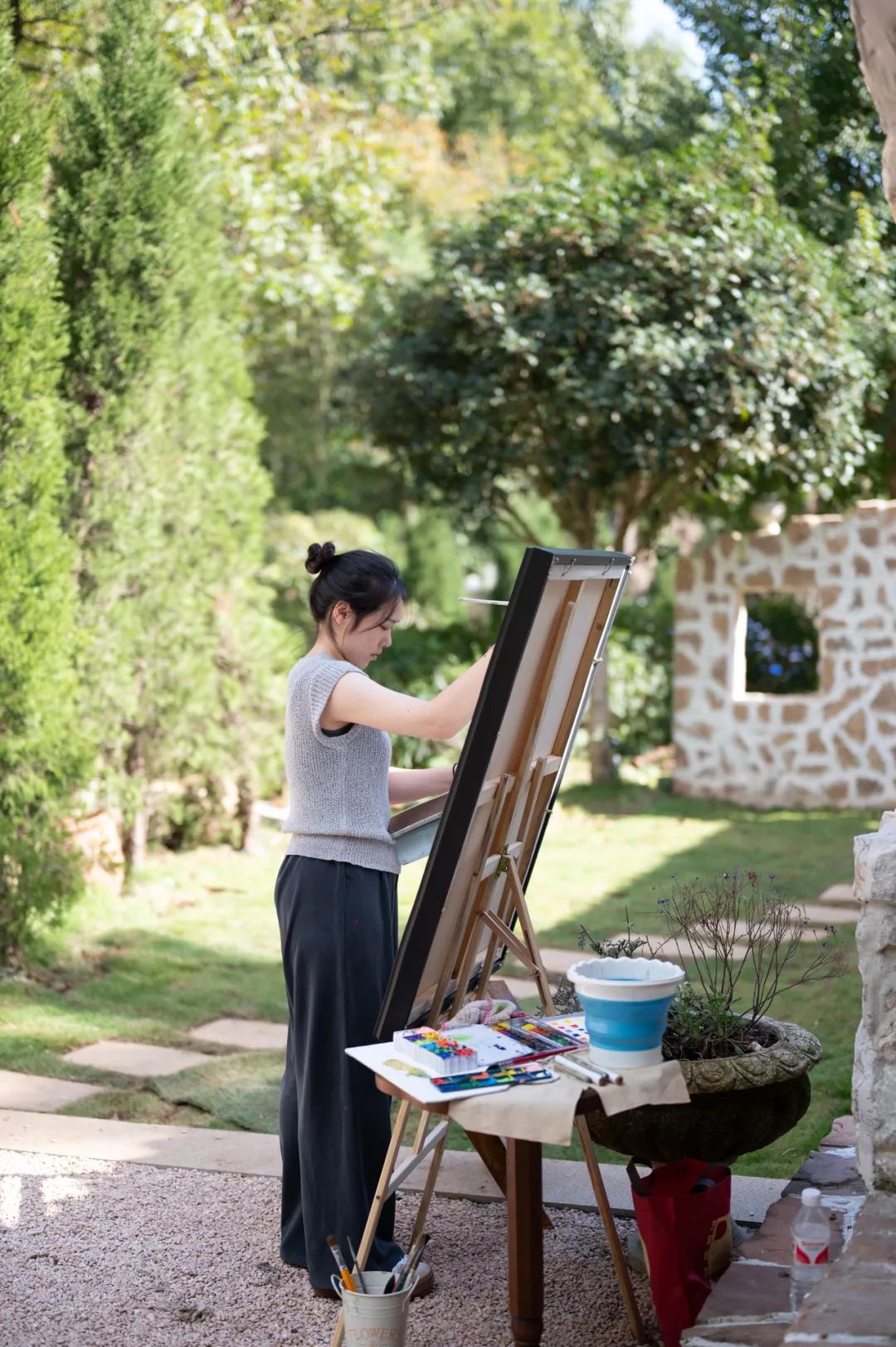 “完成一幅油画需要4-6个小时,而成品通常在同一天交付给初学者,所以现场绘画时间非常有限。早点到达现场可以提前观察静物陈设,可以先准备好可以画的背景,这也是婚礼画家最基本的专业素养。”