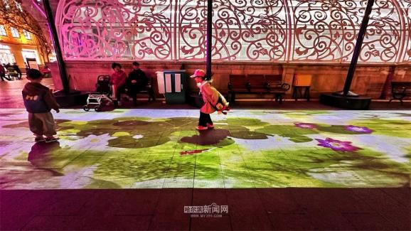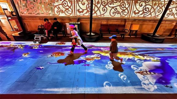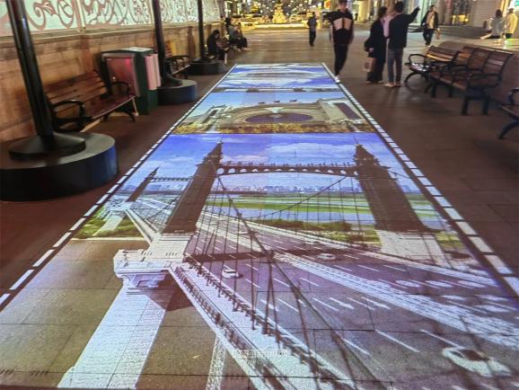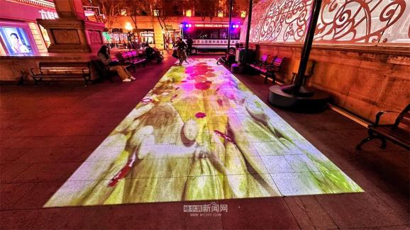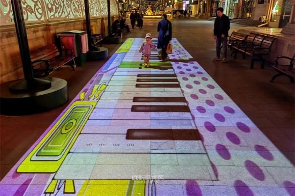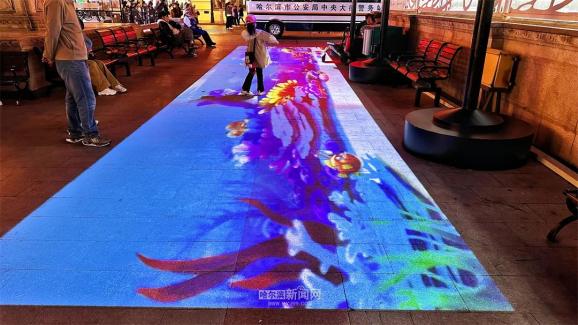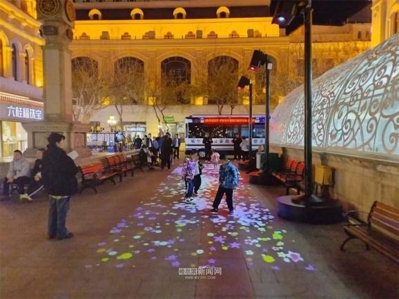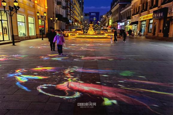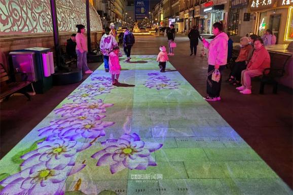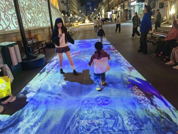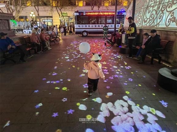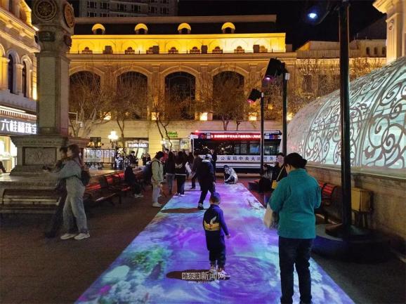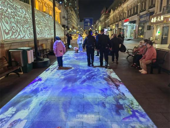 原标题:“与游客互动展示四季风光,中央大街辅街互动投影灯点亮城市美好时光”