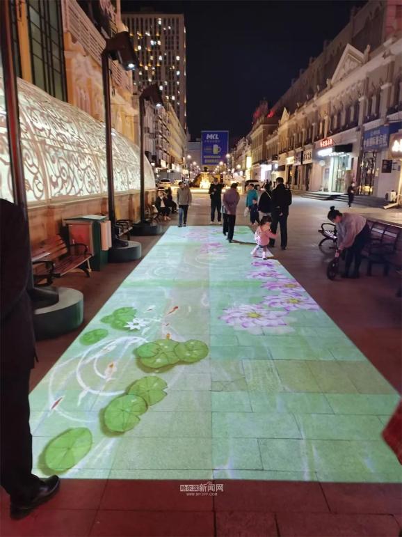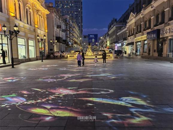 “太美了!就像童话世界一样。”前几天,来自广东的游客看到地上五颜六色的投影画面,不禁感叹。近日,在道里区城管局的统筹指导和道里区市容市政服务中心的全力推动下,中央街道辅助街道的互动投影灯正式与游客和市民见面,成为中央街道景区新的魅力亮点,点亮了冰城夏都文化旅游季的美好时光。
