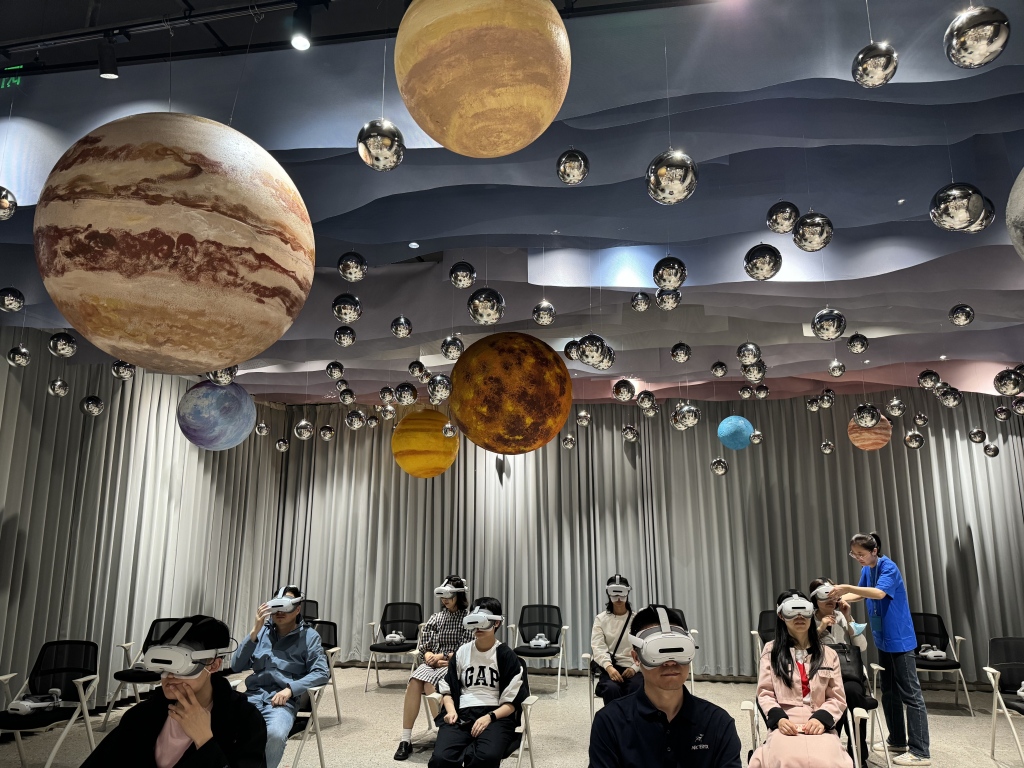 本次全国阅读月期间,徐家汇书院与上海天文馆、上海计算技术研究所有限公司共同打造的“行走天文馆”,是以天文为主题的沉浸式XR大空间文化旅游元宇宙体验项目。该项目采用XR AI技术、pico4ue眼镜、沉浸式VR体验场等。,将月球发源、地球变迁、飞跃银河系等天文馆热门展览进行数字化转换。市民和读者可以在徐家汇书院享受上海天文馆同样沉浸式的虚拟现实探索体验,全景、多感官、超现实、无边界地感受银河系的璀璨星辰和神秘的天文之旅。上海天文馆的精彩展览也是首次亮相。