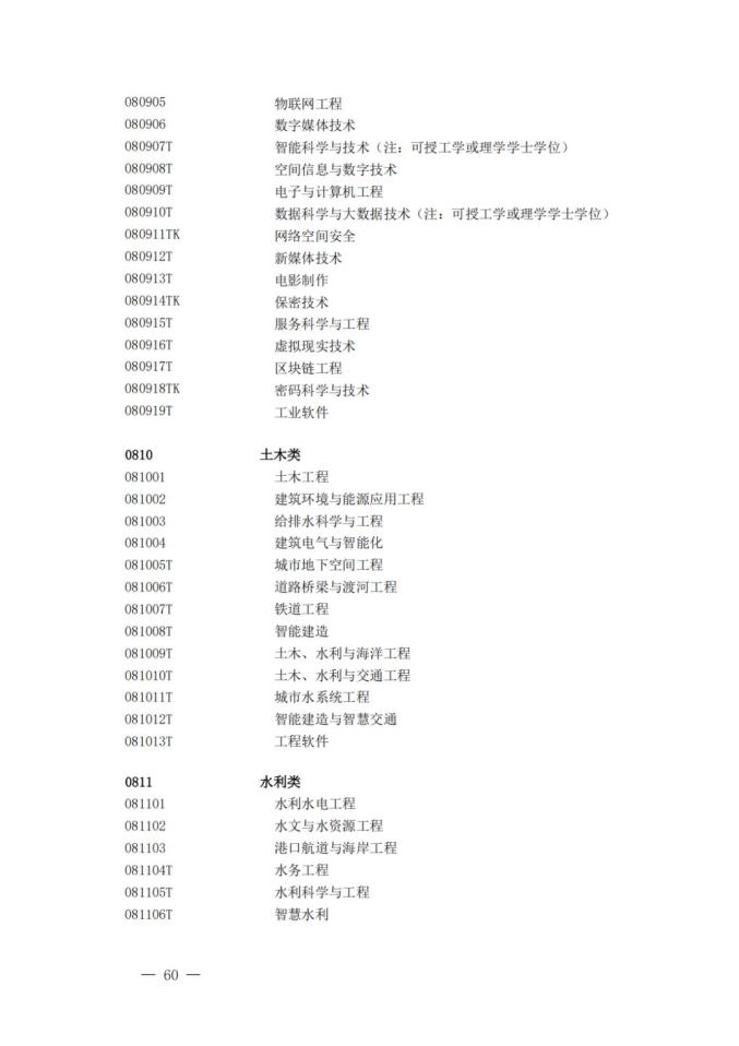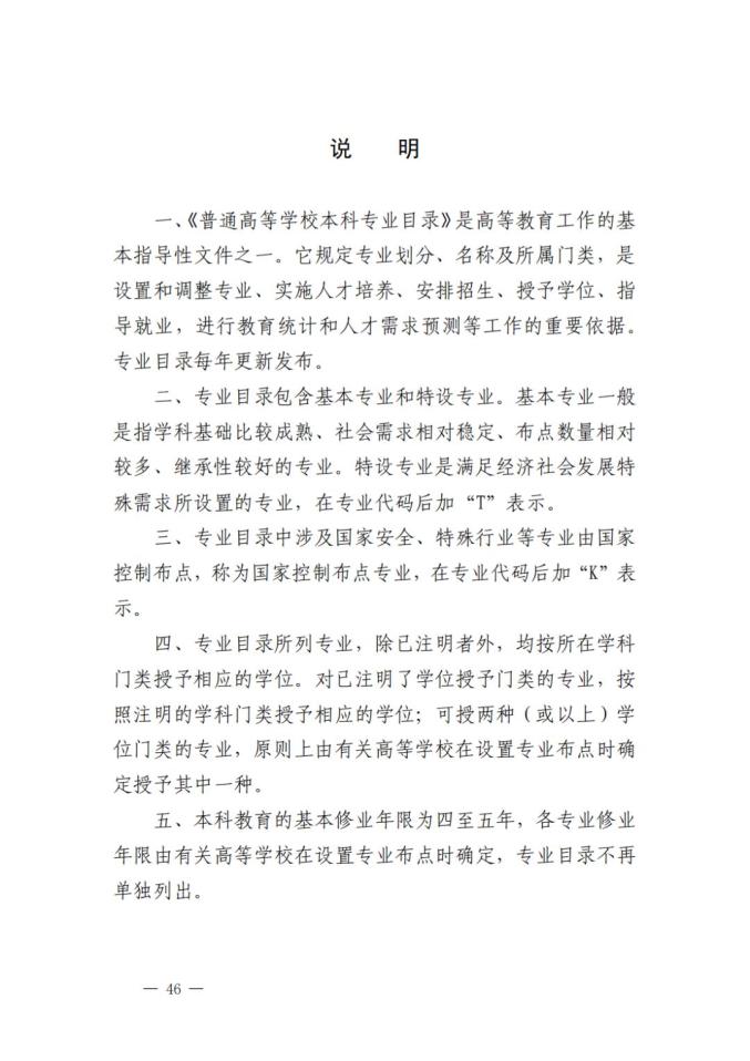 普通高校本科专业目录(2025年)