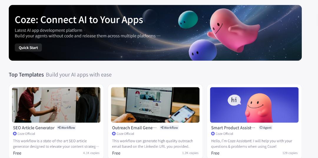 智能体平台通过接入市场上的各种大模型能力和各种Agent开放工具,不断吸引开发者,希望开发者通过各种功能的智能体进行应用生态,吸引用户,智能体平台顺势成为流量生态的入口。