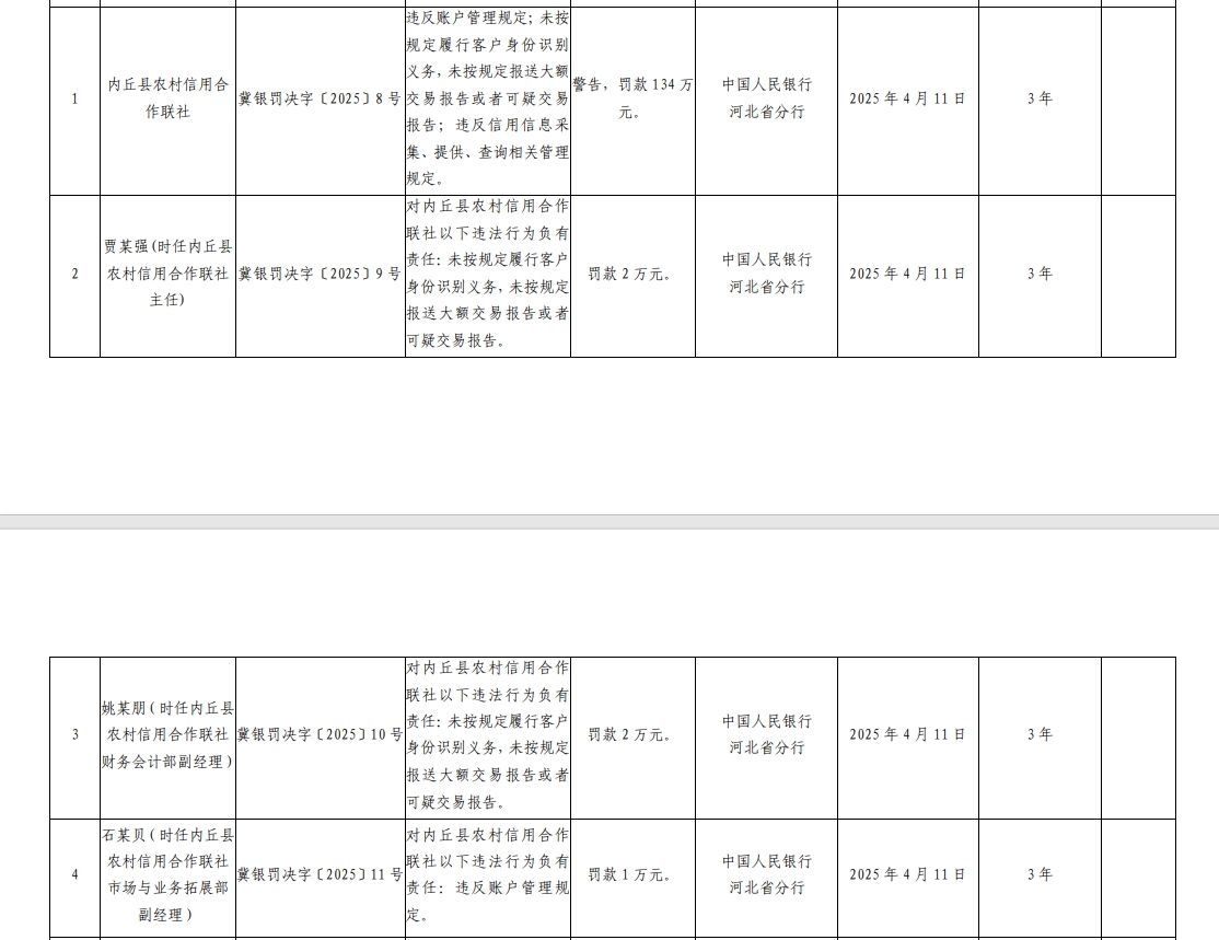 银行财眼|内丘县联社被罚款134万元 因违反洗钱规定等三项违规行为