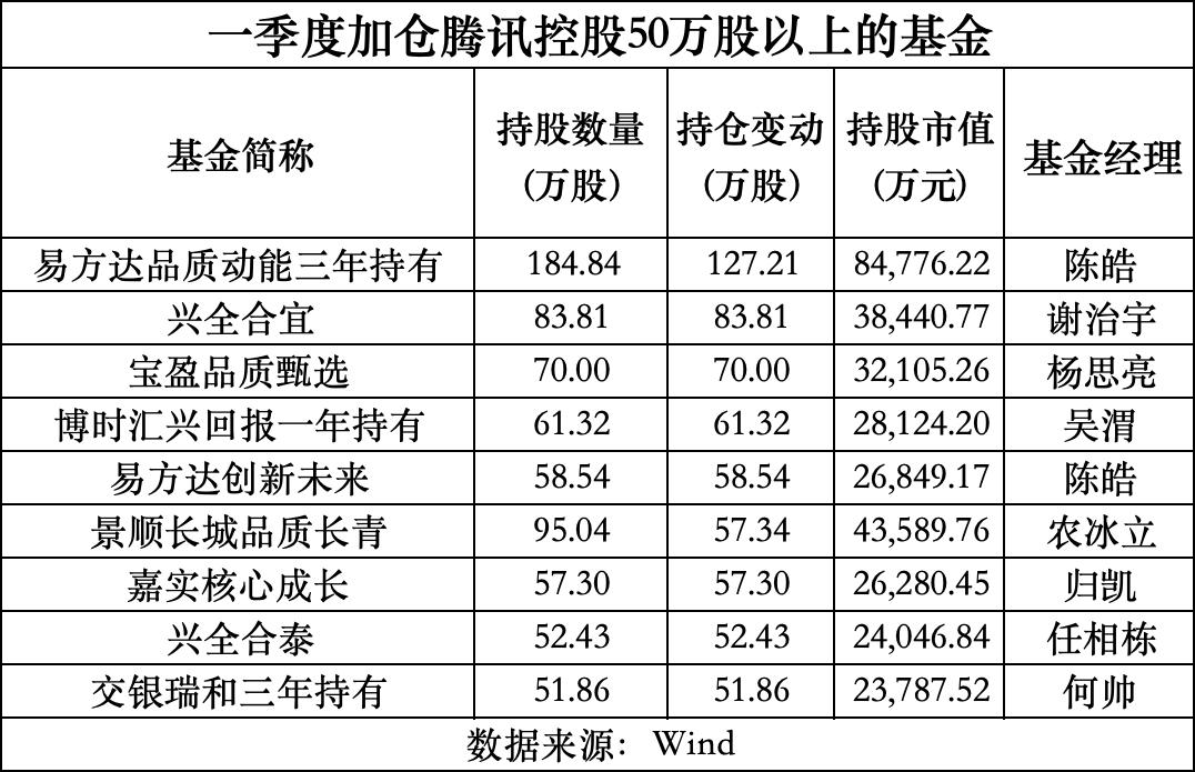 一季度,腾讯控股被9只基金分别加持超过50万股。