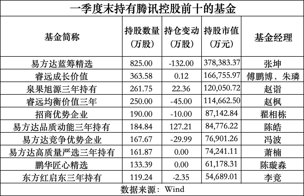 在第一季度末拥有腾讯控股前十的基金中,有4只在第一季度进行了减持。