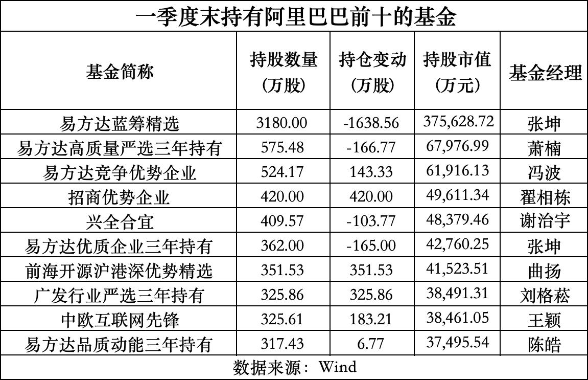 还有一些原本重仓阿里巴巴-W的基金,在第一季度减持。