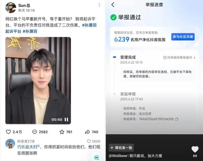然而,这一次,吃瓜网友们选择了被造谣的孙昊羽这里,纷纷自发点击检举,势必会把他们复出的可能性扼杀在摇篮里。