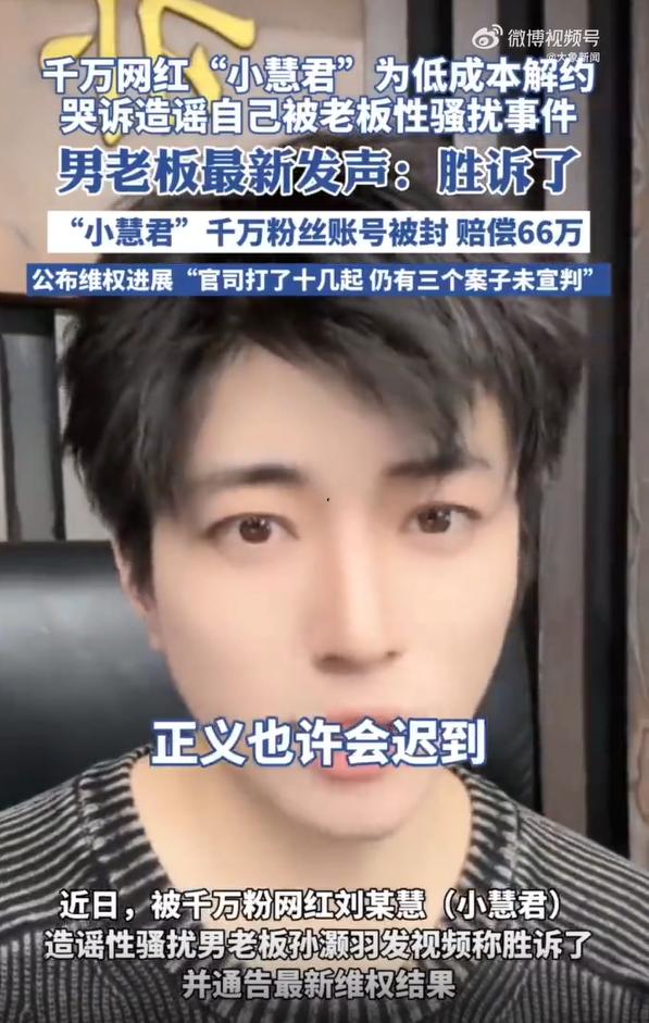 近日,被千万粉网红小慧君造谣性骚扰的男老板孙昊羽发布了一段新的视频,为这场持续了五年的闹剧画上了句号。