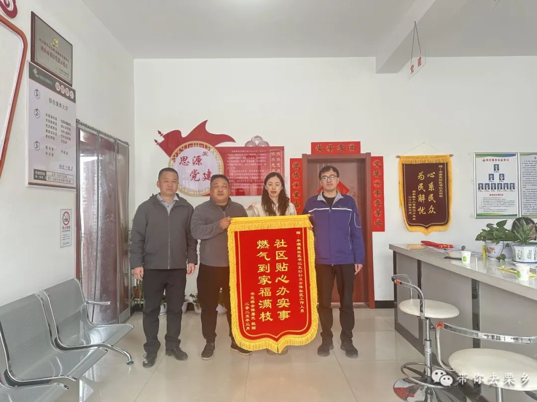 近日,栗乡街道水源社区祥和社区书苑楼煤气罐改造成功完成后,居民们满心欢喜,与燃气公司、施工方代表合作,将这面横幅送到水源社区。这面横幅承载着居民最真挚的感谢,是对社区工作的高度认可,是热心为人民服务过程的生动见证。