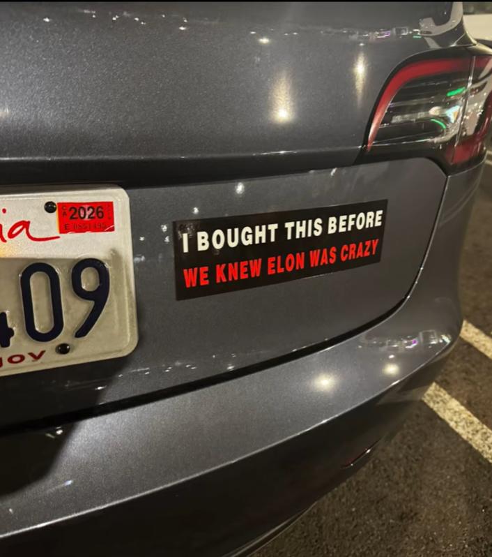 另外一个原因是,马斯克参与政治的韧性很高,引起了一些消费者的不满,甚至抗议。举例来说,有特斯拉车主在车身上贴上“我是在马斯克疯之前买的车”的标签。( 不言而喻,早知道是这样才不会买的。 )。