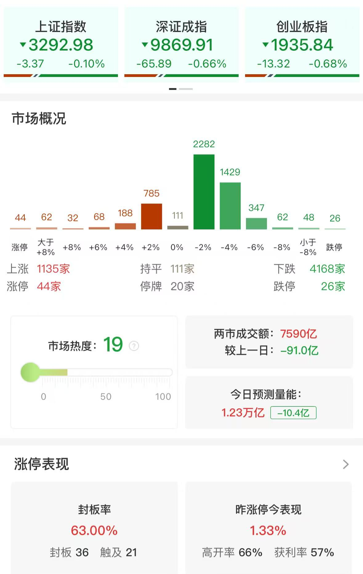 市场热点较为混乱,个股跌幅较大,整个市场跌幅超过4100只。截至收盘,上证综指下跌0.1%,深成指下跌0.66%,创业板下跌0.68%。