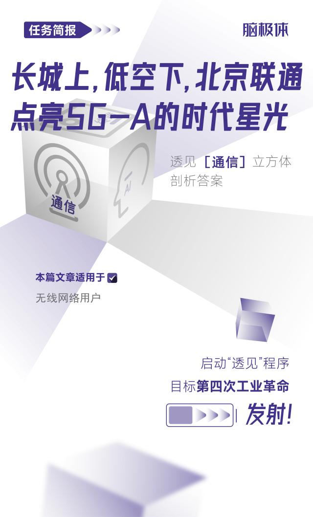 11 月 19 “日,在北京举行的” 5G Capital 路上见—— 5G-A 在同城点亮活动上,北京联通与北京延庆区政府合作,部署了行业内第一个长城景区。 5G-A 万兆天地一体化规模网络示范,打造“ 5G-A 低空经济创新基地"。
