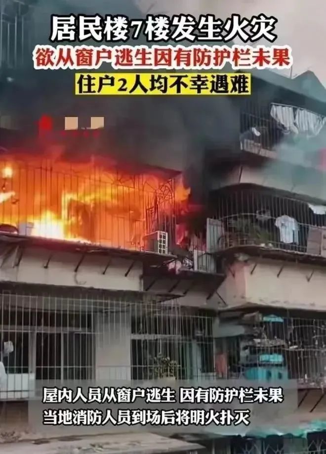 2023年4月17日,福建省福州市台江区一栋住宅楼7楼,居民家中发生火灾。明火从房间里强烈燃烧,房间里的工作人员逃离了窗户。由于护栏(防护窗)的逃生失败,两人不幸死亡。