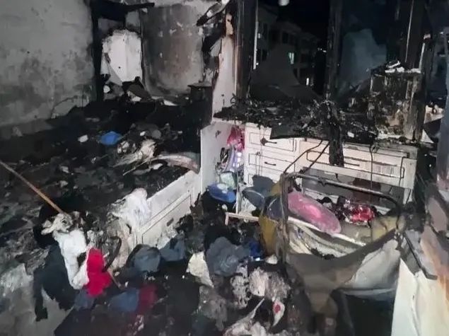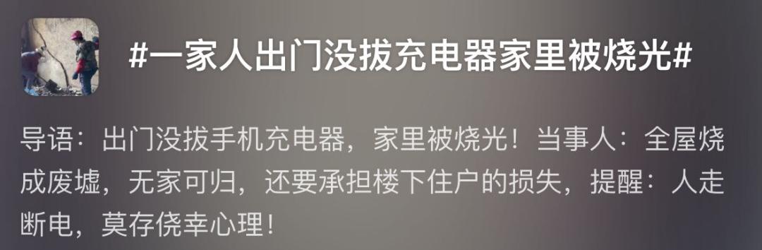 据悉,其家中老人外出散步忘拔手机充电器,火后出现的火星点燃了客厅沙发上的可燃物品。