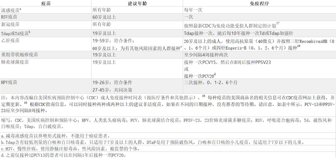 最近发布的《成人癌症病人疫苗接种:ASCO 在《指南》中,推荐了成年癌症患者需要接种或重新补种的疫苗,其中包括多种需要重新接种的疫苗。