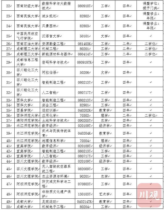 4月22日,教育部正式公布2024年普通高校本科专业备案审核结果。记者从教育厅了解到,四川高校增加了48个普通本科专业点,20个新增第二学士学位点,6个调整修业年限的专业,1个调整学位授予类别的专业,34个专业点主动撤销。2025年相关高校高考招生将纳入备案、审核、调整的专业。