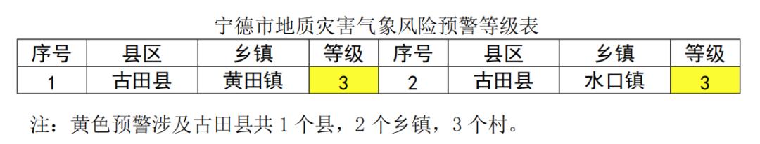 宁德市自然资源局、宁德气象局根据地灾气候风险预警信息,联合发布地灾预警结果。