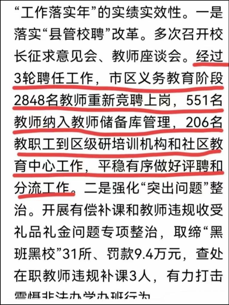 其中有些是末位淘汰,有些是让教师待岗、转岗、降级等。