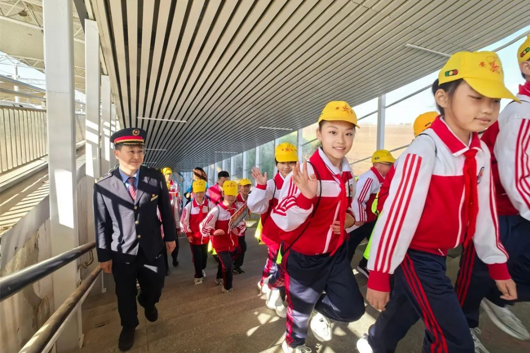 铁路工作人员还积极与学校策划研究课程,将高铁列车升级为“移动课堂”,向学生和乘客描述高铁发展史和铁路科学知识,为研究之旅增添快乐。