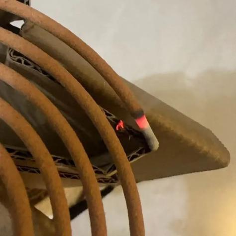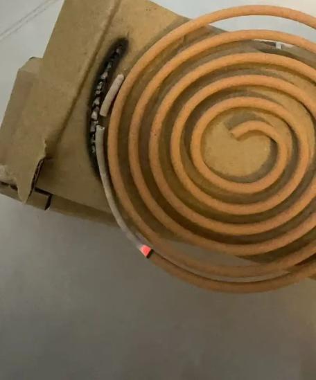 快要被我爸吓死了!突然闻到一股糊味,一看是蚊香把纸壳烧坏了。..