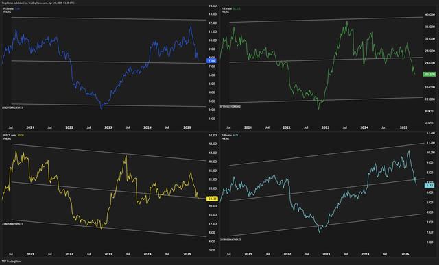 无论是 META 的市盈率 (P/E)、市销率 (P/S)、市净率 (P/B) 还是市净率 (P/FCF),公司的市盈率保持在长期平均水平以下。在很多情况下,比如“特别重要”纯利润倍数,Meta的交易价格处于较低的标准差距,这意味着该股在历史上相对具有吸引力。