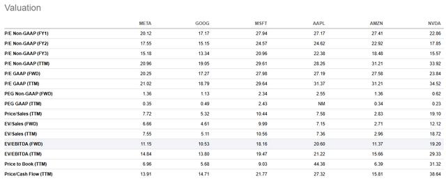 单从指标来看,Meta在大多数方面都享有第二个廉价指标,而谷歌的核心市盈率,EV/EBITDA 和 P/S 在指标上稍微便宜一点: