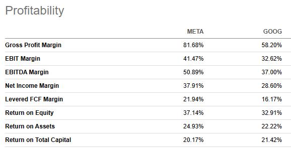 将Meta的增长情况与两家公司各自的利润率结合起来,Meta的表现显然更加出色: