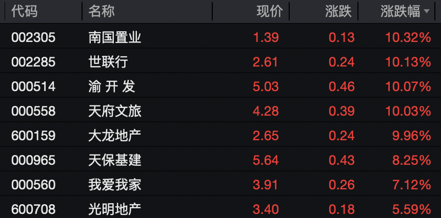 在行业板块和跑道方面,a股房地产板块大幅上涨,板块涨幅超过2%,其中德必集团板块涨幅一度超过15%,随后收窄。南方地产、世界银行、重庆开发、大龙地产等多只股票涨停。