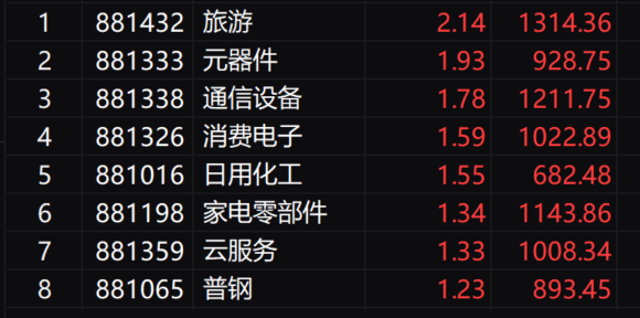 电力、旅游、电力、旅游、CPO、虚拟电厂等板块涨幅居前,贵金属、化学制药、草甘膦、跨境支付等板块跌幅居前。