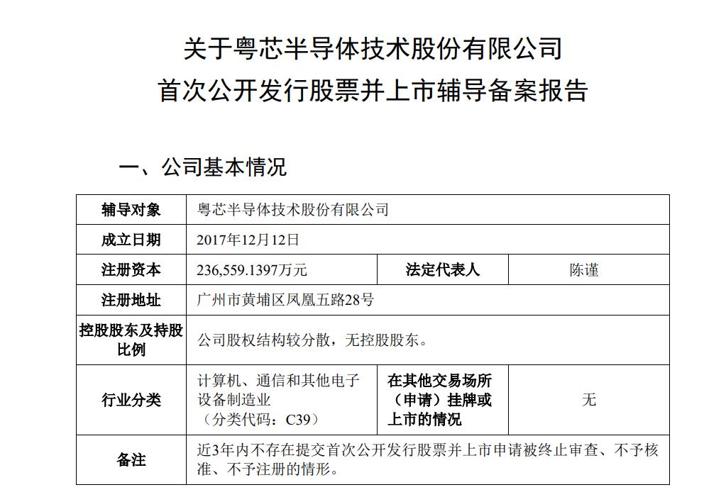 近日,据中国证监会官网消息,粤芯半导体科技有限公司(以下简称粤芯半导体)向广东证监局提交IPO辅导备案,辅导机构为广发证券。