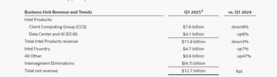 英特尔新帅首考:Q1营收127亿美元,净亏损8亿美元,盘后下跌5%。