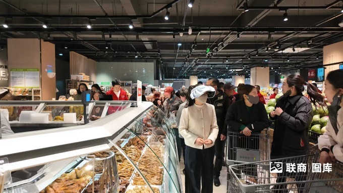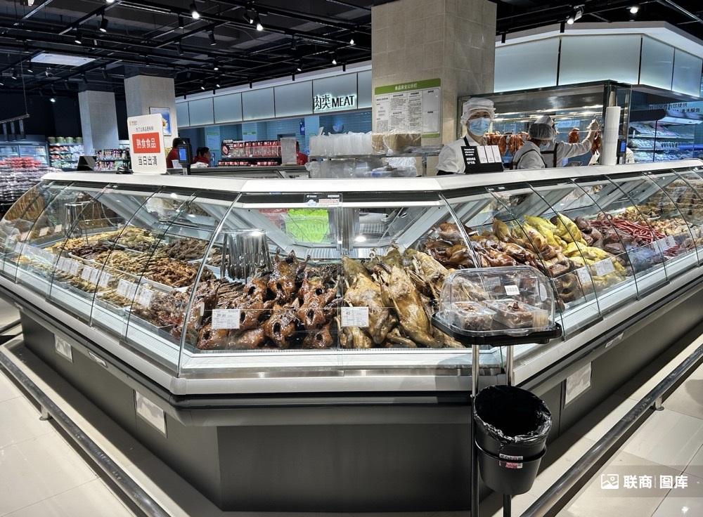 为了方便民生,店铺扩大了蔬菜、肉类、水果、水产品等新鲜板块的经营面积,引进了品牌色湾藏香猪,扩大了牛肉和家禽的经营类别。同时,店铺扩大了低温日常配送类别,增加了新的熟食区和烘焙区。